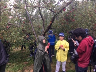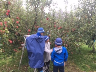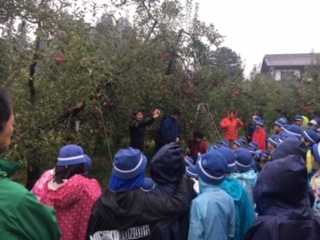 いよいよりんご狩りです。どんなりんごをいくつ、どのように取るか聞いてから取ります。取る品種は、アカギです。よーく選んで一つだけ取りましょう。