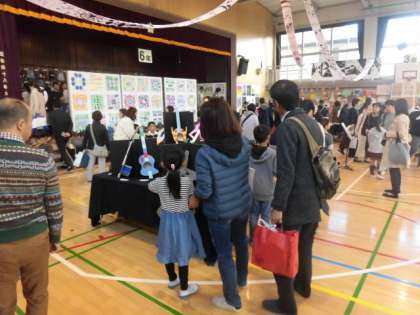 展覧会も2日めになりました。今日は午前中は親子鑑賞。午後は、16時30分(最終入場16時)までとなっています。たくさんの皆さんの来校をお待ちしています。