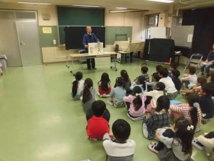 2年生が、烏山図書館の方に、「お話し会」をしていただきました。各学学級ごとに集会室で、いろいろな本をいろいろな方法で読んでいただきました。みんな真剣に聞いていました。25日(月)から12月6日(金)は、読書週間です。学校でもお家でもたくさんの本を読みましょう。