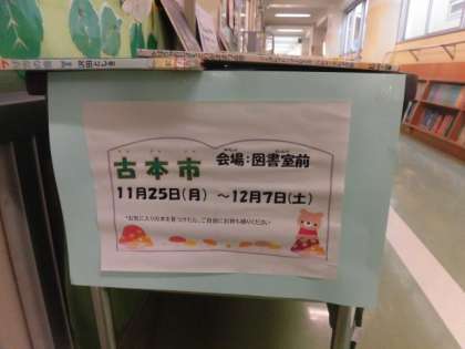 読書週間に合わせて図書室で「古本市」を開催しています。長くむさしヶ丘小学校の図書室にあった本で古くなたもの「古本」シールを貼って廊下に置いてあります。ご来校の際に見ていただき、家に持ち帰りたいものがありましたら、お持ち帰りください。