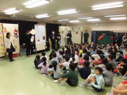 2校時に集会室で3年生の保護者の方が、読み聞かせをしてくださいました。季節の行事をテーマに楽しい時間を過ごしました。準備・運営ありがとうございました。