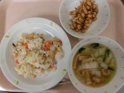 チャーハン・大豆とじゃこの甘辛あげ・中華スープ