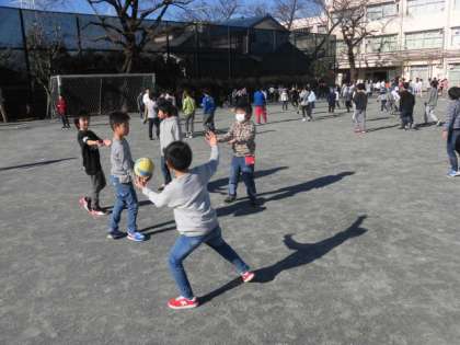 3学期2日め、今日は朝からとても良い天気で、子どもたちは久しぶりに広い校庭で元気に外遊びをしています。3学期は、寒い日も多いと思いますが、元気に外遊びを続けていきましょう。
