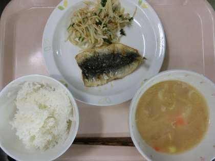 ごはん・いわしの蒲焼き風・もやしのごま風味・呉汁