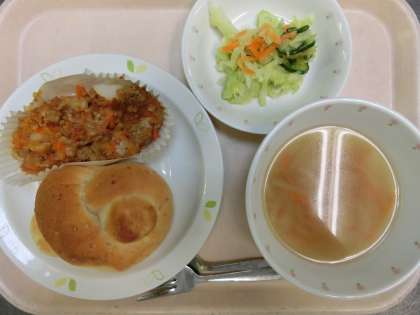 セサミパン・ポテトグラタン・コンソメスープ・フレンチサラダ