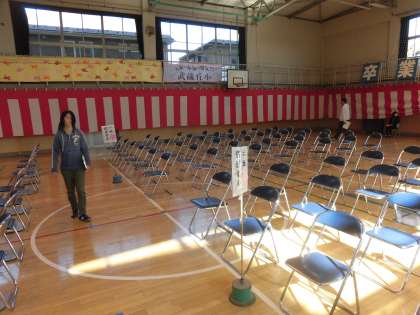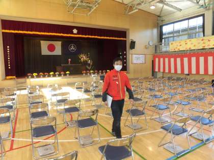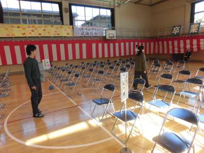 明日の卒業式に向けて体育館の準備も整いました。最後は、先生方のリハーサルです。明日は、きっと素晴らしい卒業式になるでしょう。明日に備えて今日はゆっくり休んでくださいね。