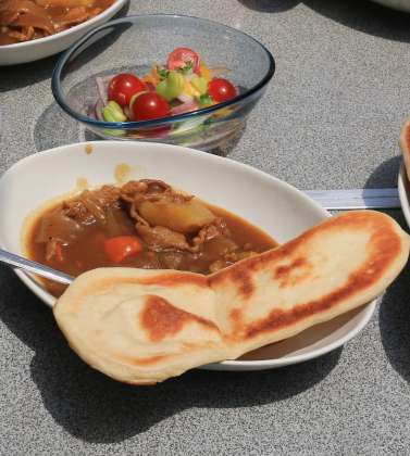 1)ナンカレーとそら豆サラダ