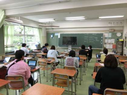 本日、先生方同士で「ロイロノート」の使い方の研修会を行いました。楽しく学習しながらも、子どもたちにはどのようにして進めたらよいか、常に考えなら学びあっていました。
