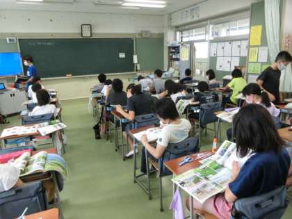 社会では「お米づくりカレンダー」を作りながら、お米作りの工夫について学んでいました。また講師の吉川先生による国語の授業もありました。竹取物語について意味を確かめながら音読しました。総合的な学習の時間はSDGsを意識して、環境について学んでいます。
