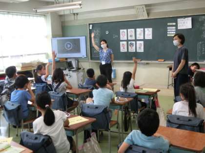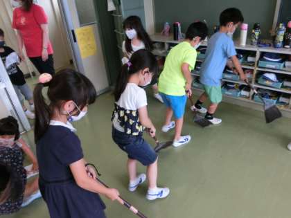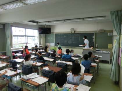 今日は3年生の様子をお伝えします。算数では分配の法則、交換の法則という難しいことを学んでいました。2年生で学習したかけ算九九を活かしてどんどん難しくなってきています。外国語活動ではALTのサンディ先生といっしょに楽しく英語を学んでいました。今週から掃除も始まりました。3年生の担当の子は1年生の教室に行って一緒に掃除をしています。3年生の掃除はさすがに上手ですね。よいお手本となっています。