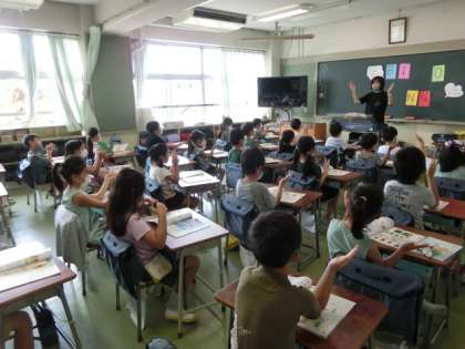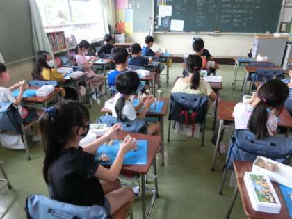 今日は久しぶりに校庭で遊ぶことができました。元気にのびのびとすごしています。図工では「グアナコさん」というまだ見たことのない動物を粘土でつくりました。怖い恐竜かな?かわいい動物かな?2年生の発想は素晴らしいですね。音楽では「橋の上」でという曲で、2拍子を感じながら手を叩いたり、「ドレミの歌」で木琴を使って演奏したりしました。