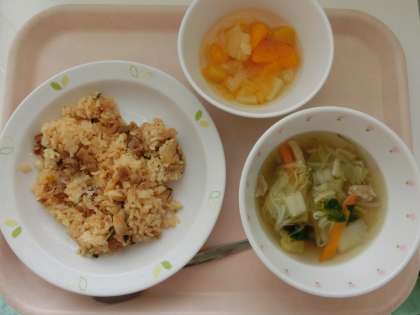 キムチチャーハン・中華スープ・フルーツポンチ