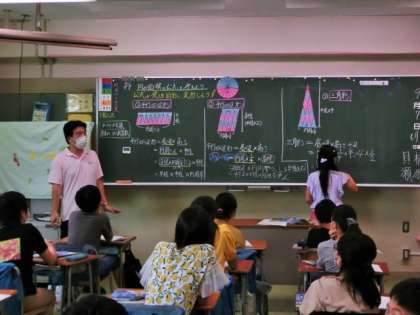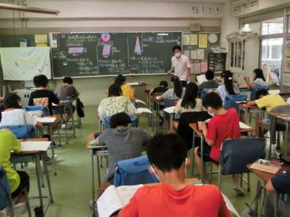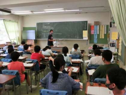 6年生の算数では、「円の面積」の学習をしています。円を切って、既存の知識(平行四辺形や三角形の面積の公式)を活かして、円の公式を導き出していました。「本当に半径×半径×円周率になるんだ」と驚いていました。ただ公式を覚えるのではなく、こうやって実際に公式を導くことにより理解が深まります。さらに円の面積の公式を使って、さまざまな図形の面積を求めていました。