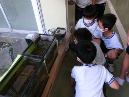 生活科では「生きものはかせになろう」ということで、校内でいろいろなところで飼われている生き物の観察をしました。大きさや色だけでなく、動きかたなどの特徴をよく観察していました。体育では運動会のダンスの練習も始まっています。チアーバトンを使ってとても上手に踊っています。