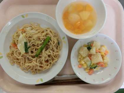 塩焼きそば・マセドアンサラダ・フルーツ白玉