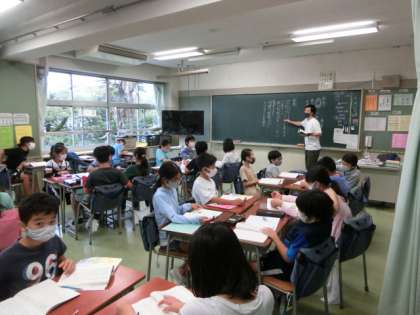 図工では「アイランド」という焼き物の作品づくりに取りかかりました。今日は粘土をこねて、島づくり。粘土の感触を楽しんでいました。国語では「たずねびと」という物語教材を読みました。今日は読書後の感想について、みんなで話し合いました。戦争について、原爆について、主人公について、いろいろな感想や疑問が出ていました。算数では「大きさの等しい分数の表し方」について考えました。分母と分子に同じ数をかけてもわっても大きさは変わらないことがわかりました。