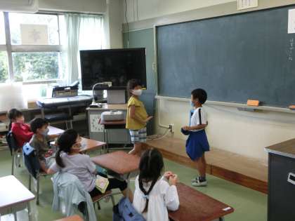 本校では、道徳科の授業を中心に校内研究を進めています。今年度の研究主題は「自ら進んで考え、話合い、共に学び合える児童の育成」です。新型コロナウイルスの対応で、話合いを積極的に行うことはできませんが、道徳科の授業を通して発問や指導方法の工夫、改善を中心に研究主題にせまっていきます。本日は3校時1年2組、4校時1年3組、5校時1年1組で「あいさつ」の授業を行いました。最後のふり返りで「あいさつをすると、あいてもうれしくなるから、これからもあいさつをしたいです。」と書いている子がいました。道徳の授業はきっかけづくりです。あいさつを通してよりよい人間関係が築けるようになるといいですね。