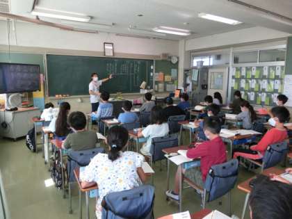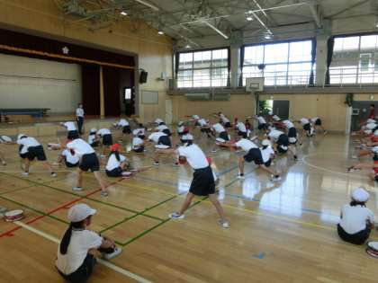 国語では「ごんぎつね」の学習に入りました。はじめに登場人物のごんの性格を想像しました。「本当は優しい」「短気」「用心深い」など、文章から子どもたちはいろいろと考えていました。英語では「What time is it?」と時間の答え方をサンディ先生と楽しく学びました。4校時は体育館で、運動会で踊る「エイサー」の踊り方を一つ一つ、確認しました。少しずつみんなの踊りがそろってきて、かっこよくなってきました。