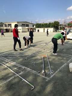 今日の放課後は、先生と主事さんで運動会の準備をしました。