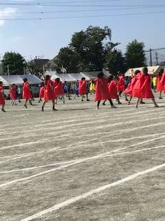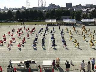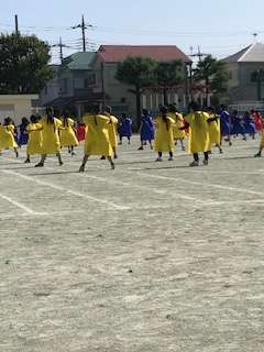 赤、青、黄色のはっぴを着て、元気いっぱいに踊りました。