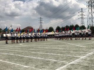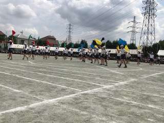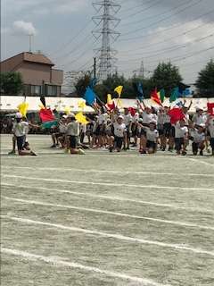 赤、青、黄、緑、黒の旗がなびき、武蔵丘小にオリンピックが来ました。6年生は最後の運動会。思いっきり演じました。