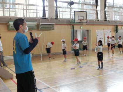 なわとびパフォーマーの藤沢祥太朗さんこと、ふっくんが今年も武蔵丘小に来てくれました。朝会ではテレビ放送で、ふっくんのパフォーマンスを見ました。曲に合わせて、いろいろな跳び方を披露してくれました。どの教室でも歓声が聞こえました。その後、3年生と4年生が、ふっくんの授業を受けました。跳び方のコツをいろいろと教えてくれました。「できた!」「跳べた!」と喜んで跳んでいる子がたくさんいました。最後にハッスルタイムでもふっくんと一緒になわとびをしました。「なわとびは跳べば跳ぶだけ、上手くなる」ふっくんから見て学んだこと、教わったことを大事にして、今年もなわとびに取り組んでいきましょう。