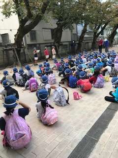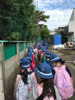 高井戸公園に到着しました。これからクラス写真を撮って遊具で遊びます。