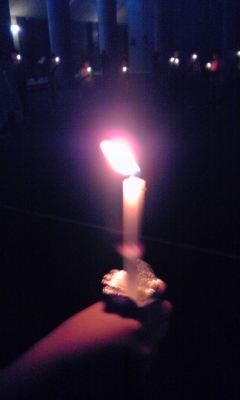 今、キャンドルサービス が終わりました。雨が降り出したこともあり、室内広場で行いました。
