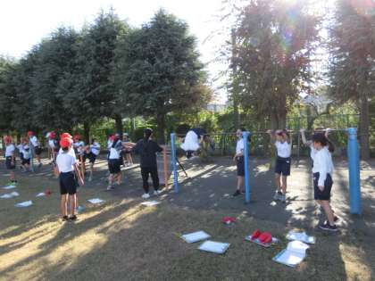 算数では「単位量あたりの大きさ」の学習をしています。今日は1分間あたりの歩く速さを求めから、残りの道のりについて考えました。「道のり」と「速さ」と「時間」の3つの関係がよく理解できるようになるといいですね。体育では「鉄棒」を学習しています。それぞれの課題に応じて進めています。一人一人、粘り強く取り組んでいて素晴らしいと思います。図工では「ステンドグラス」づくりに入りました。今日は図案の下書きをしました。どのようなものが出来上がるのか、とても楽しみです。