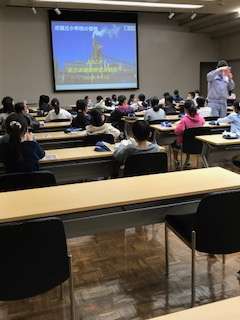 子供たちは、係の方のお話を聞きながらメモを取っていました。