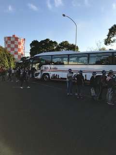 これからバスに乗って帰ります。学校到着は、16時30分頃を予定しています。