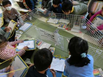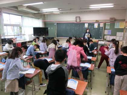 生活科では、今まで使ってきた鉢の土を1度外に出して、肥料を混ぜて、みんなで土づくりをしました。その後、チューリップの球根を植えました。球根の芽が出てくるのはいつでしょう?楽しみですね。国語では「くじらぐも」の学習が進んでいます。今日は雲にのったときの気持ちを体で表現して考えていました。また、学校で飼っているうさぎの「ふくちゃん」を観察しました。観察カードとともに、文章でふくちゃんの様子をノートに書きました。ふくちゃんはみんなの人気者です。
