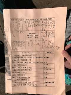 遠足のしおりのミッションリストから、班で決めたミッションをクリアしていきます。