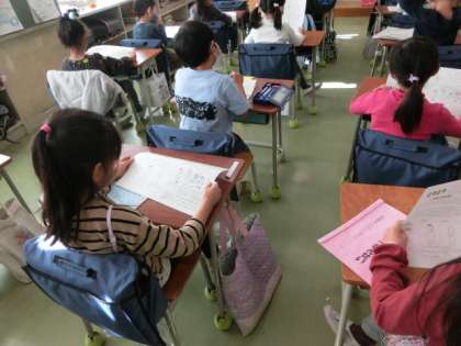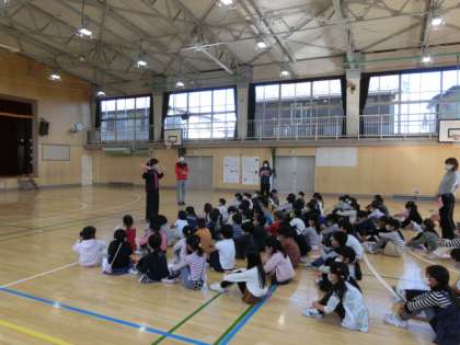 1年生の学習発表会が2週間後の28日と迫ってきました。昨日から体育館で練習を始めています。今日は発表会で着る衣装の話をしたり、体育館で声出しをしたりしました。かさこじぞうをベースにした「いいこといっぱい1年生」という演目、どのような発表会になるか、楽しみです。