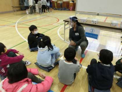 教育センター内にある「多文化体験コーナー(タッチザワールド)」の方々が本校に来て、授業を実施してくれました。講師はエミリー先生と、ALT(外国人講師)6名です。エミリー先生のオープニングの後、英語で日本の昔話を聴いたり、グループに分かれて異文化体験(世田谷、コミュニケーション、日本文化など)をしました。直接、英語で会話する機会が多く、子供たちは緊張しながらも楽しく交流ができたようです。