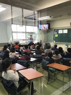 6年生の発表の様子は、各教室にライブ配信しています。
