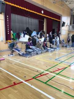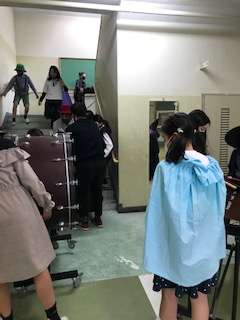 学習発表会が終わった後、舞台のセットや楽器、たくさんのパイプ椅子など、5年生が会場の片付けをしました。あっという間に、元の体育館に戻りました。