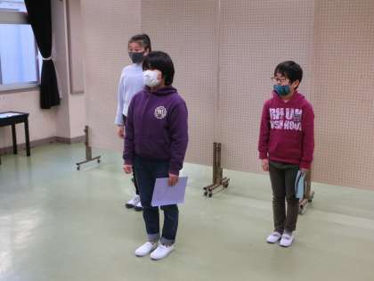 児童代表の言葉は、4年生からです。クラス代表の児童が、2学期にがんばったこと(学習、運動会の踊り、発言など)と3学期の抱負について緊張しながらも立派に話すことができました。