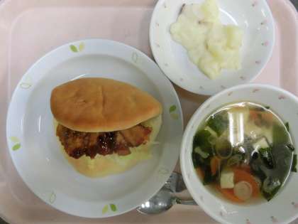 セルフフィッシュサンド・じゃがいものクリーム煮・わかめスープ