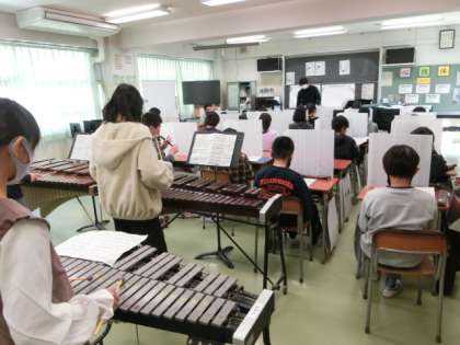 音楽では「情熱大陸」の合奏の練習をしています。各パートに分かれ、先生の指導のもと主体的に演奏の練習を進めていて、さすが最高学年だなと感じます。他の学年に聞かせてあげたいです。