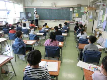 道徳では「120てんのそうじ」という教材を使って、みんなで教室をきれいにすることについて考えました。主人公のゆうやさんは最後にどんなことを思って「あしたはどこをきれいにしようかな?」と言ったのでしょうか?(子供たちのノートより)「あしたもほめられたいな。120てんだったけど、あしたはいろいろなところをやって120てんにしたい。」一人一人が考えたことを先生がまとめながら学習が進んでいます。