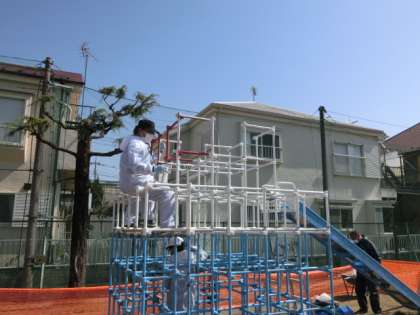 昨日より約2週間ほどかけて、校庭の遊具を塗り直しています。