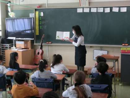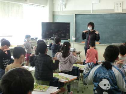 図書館司書の柘植先生による読み聞かせがありました。今日は「おおきくなるって いうことは」と「999ひきのきょうだいの はるです」を読んでくれました。みんなよく集中して聞いています。「999ひきのきょうだいの・・・」はシリーズだそうです。4月からは新しくなった図書室がオープンします。楽しみに待っていてください。