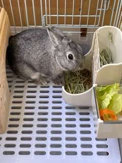 うさぎのふくちゃんは、元気です。春休み中に、また少し大きくなりました。子供たちに遊んでもらえるのを待っています。