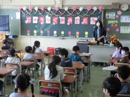 昨日の校長先生のお話にあった「あ・ひ・る」の「る」学校のルールについて、これからもゆっくり学んでいきます。緊張しながらも姿勢よく立派に話を聞いて、花丸の1年生でした。