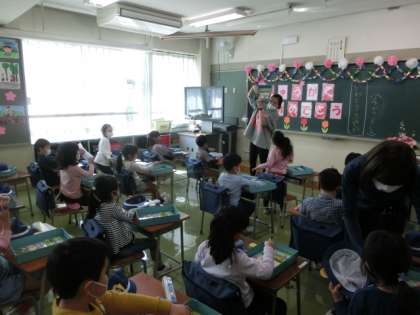 他には自分の名前を書く練習や、外に出て手洗いの練習もしました。基本的な学校のルールを一つずつしっかり学んでいます。