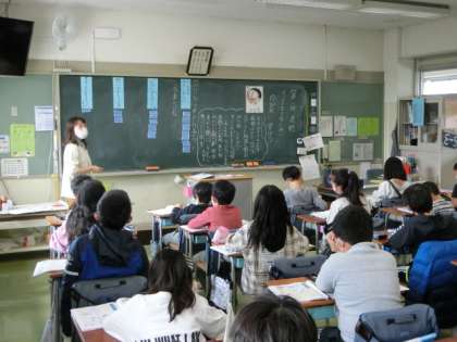 国語の最初の教材は「なまえをつけてよ」という物語文です。担任の先生の朗読を聞いた後、ノートに感想などを書きました。感想はただ思ったことだけでなく、疑問に思ったこと、考えたことなどを書きます。5年生になって初めてのことなので、どのように書いていいのか、担任の先生にたくさん質問していました。