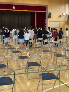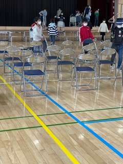 今回の保護者会の会場設営は、6年生がやってくれました。3回分の体育館の椅子出しと片付けが、あっという間に終わりました。
