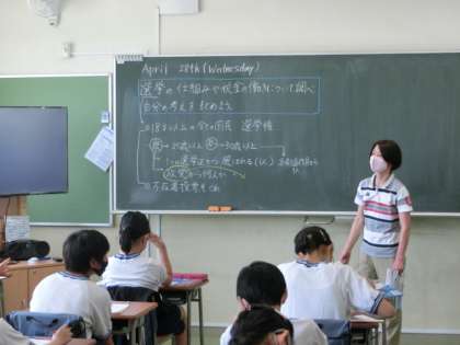 家庭科では「朝食から健康な1日の生活を」ということで、栄養バランスについて学びました。まずは栄養バランスがよい食事について考えます。でも子供たちの興味は・・・「調理実習ができるかな?」でした。
