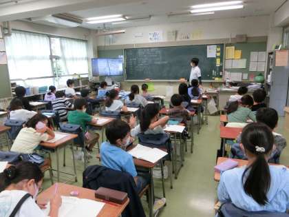 算数は「わり残の筆算」の学習です。あまりのあるわり算もあります。スムーズに正確に計算できるよう、くり返し練習していきましょう。